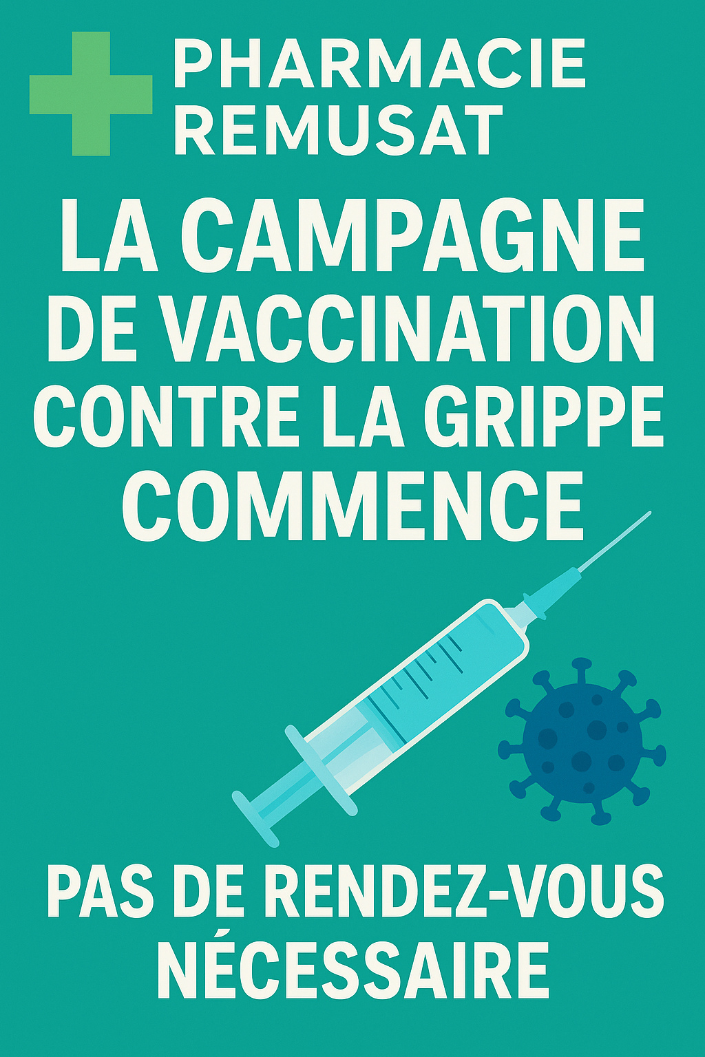 À partir du , la pharmacie REMUSAT vous accueille sans rendez-vous, du lundi au samedi, de 9h à 19h30.